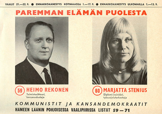 Heimo Rekonen ja Marjatta Stenius, SKDL 1975