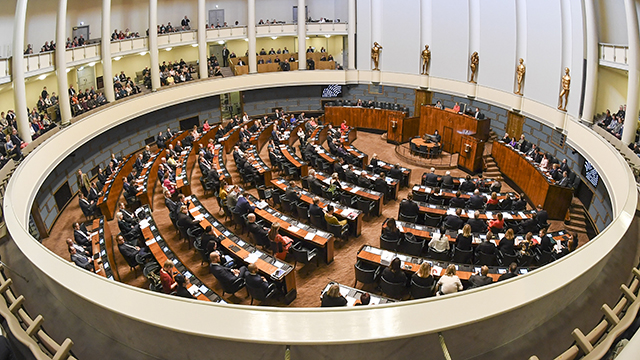 Eduskunnan istuntosali. ​Kuva: Eduskunta