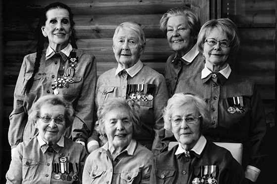 Näyttelyn kuviin kuuluu yhteiskuva kaikista seitsemästä lotasta. Kuvassa istumassa Alli Brotherus (vas.), Laine Lahdelma ja Helmi Kotkanen Ylärivissä vasemmalta Aira Samulin, Tuovi Toivonen, Aira Kojo ja Auni-Leila Eulenberger.