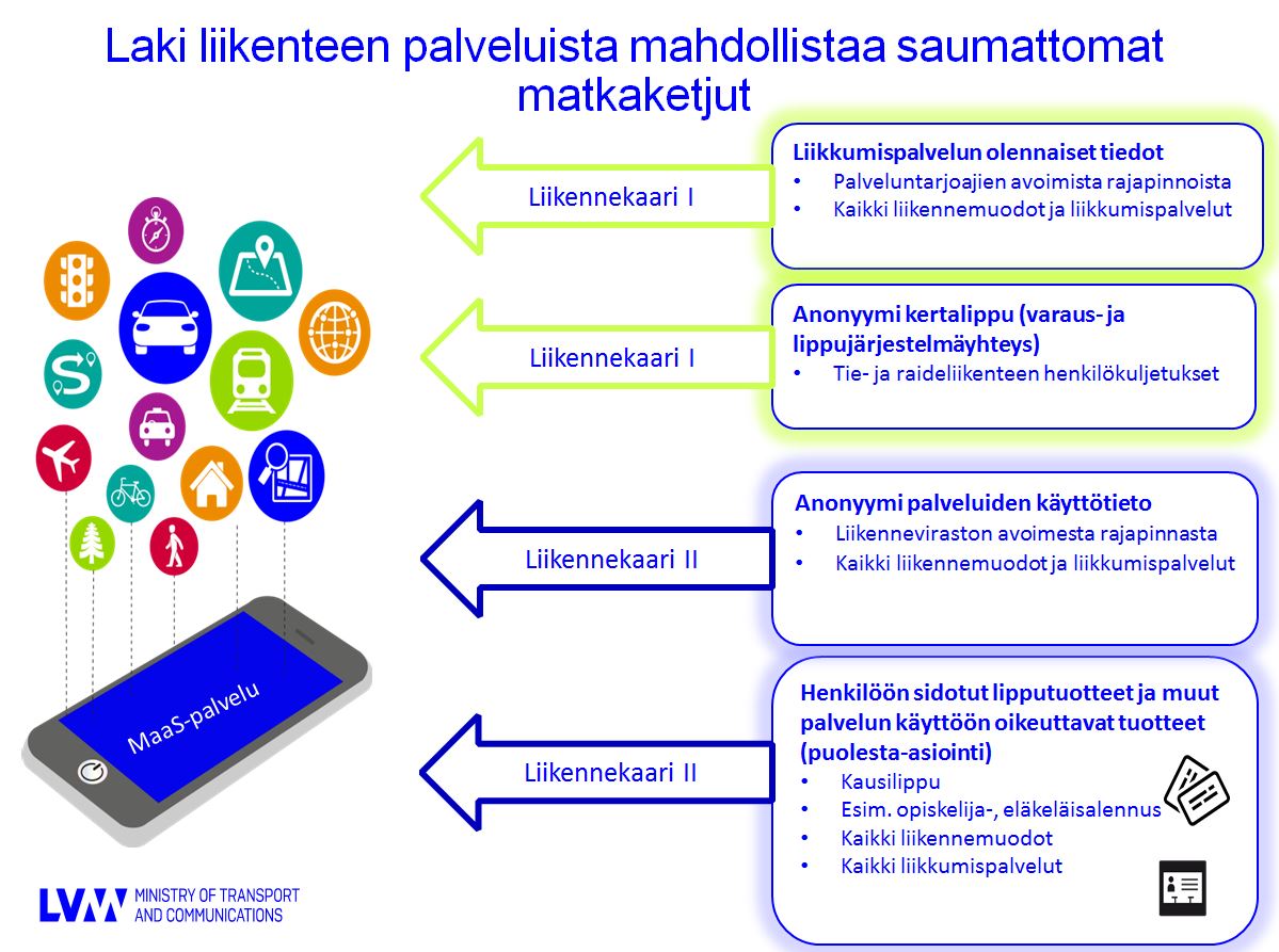 Vuoden alusta 2018 voimaan tulevien liikenteen palveluista annetun lain säännösten tavoitteena on taata lippujärjestelmien ja liikkumispalveluiden edellyttämien tietojärjestelmien yhteentoimivuus. Alan toimijoille on perustettu avoin verkosto, jotta kaikkien toimijoiden näkökannat saadaan huomioiduiksi. Liikennevirasto, Liikenteen turvallisuusvirasto ja Viestintävirasto ovat käynnistäneet yhteistyönä hankkeen, jonka tavoitteena on edistää liikenteen palveluista annetun lain edellä kerrottujen tavoitteiden toteutumista käytännön tasolla määrittelemällä tekniset ratkaisut ja käytännesäännöt toimijoiden väliseen tiedonvaihtoon (https://www.viestintavirasto.fi/ohjausjavalvonta/yhteistyo/kansallinenyhteistyo/yhteishankkeet/lippu-jamaksujarjestelmanyhteentoimivuus-hanke.html). Rajapintojen avaaminen edellyttää luottamuksen, tietosuojan ja tietoturvan takaavia ratkaisuja. Verkoston käynnistystilaisuus pidettiin 9.3.2017.