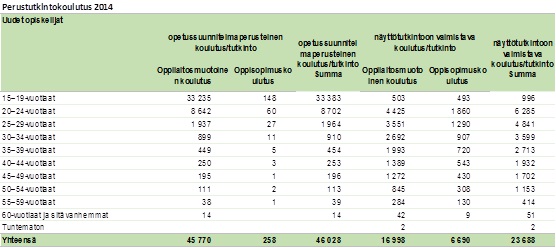 Tilastokeskuksen koulutustilastojen mukaan ammatillisessa peruskoulutuksessa aloitti kalenterivuoden 2014 aikana yhteensä noin 69 700 uutta opiskelijaa. Näistä ammatillisessa peruskoulutuksena suoritettavissa perustutkinnoissa aloitti noin 46 000 ja näyttötutkintoon valmistavassa ammatillisessa peruskoulutuksessa 23 700. Vuonna 2014 16—18-vuotiaiden keskimääräinen ikäluokan koko oli noin 60 700. Perusopetuksen päättäneistä on viime vuosina noin 43—45 prosenttia eli noin 26 000—27 000 henkilöä sijoittunut välittömästi perusasteen päättämisen jälkeen ammatilliseen peruskoulutukseen. Tilastokeskuksen väestöennusteen mukaan vuonna 2017 16—18-vuotiaiden keskimääräinen ikäluokka olisi noin 59 100. Nuorisoikäluokan arvioidaan pienenevän vielä vuonna 2018 (58 700), minkä jälkeen sen arvioidaan kääntyvän lievään nousuun vuonna 2019 ja nousevan tästä eteenpäin. Vuoden 2014 taso arvioidaan saavutettavan vuonna 2021.