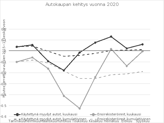 Covid-19-epidemialla on ollut autokauppaa hidastava vaikutus. Erityisesti uusien autojen kauppa on kärsinyt epidemiasta. Uusia henkilöautoja ensirekisteröitiin erityisesti huhti- ja toukokuussa selvästi normaalivuosia vähemmän. Ensirekisteröintejä on tehty vuoden 2020 tammi-syyskuussa noin 17 000 vähemmän kuin vuosina 2015–2019 keskimäärin. Ensirekisteröintien määrä on siten ollut kuluvana vuonna noin 19 prosenttia vähäisempää kuin aiempina vuosina. Käytettyjä autoja on sen sijaan myyty tänä vuonna tavanomainen määrä, mikä on tasoittanut vaikutuksia autokaupan näkökulmasta.