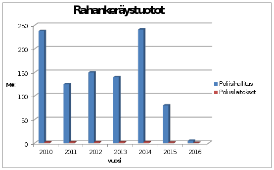 Vuosina 2010–2016 myönnettyjen rahankeräyslupien määrät