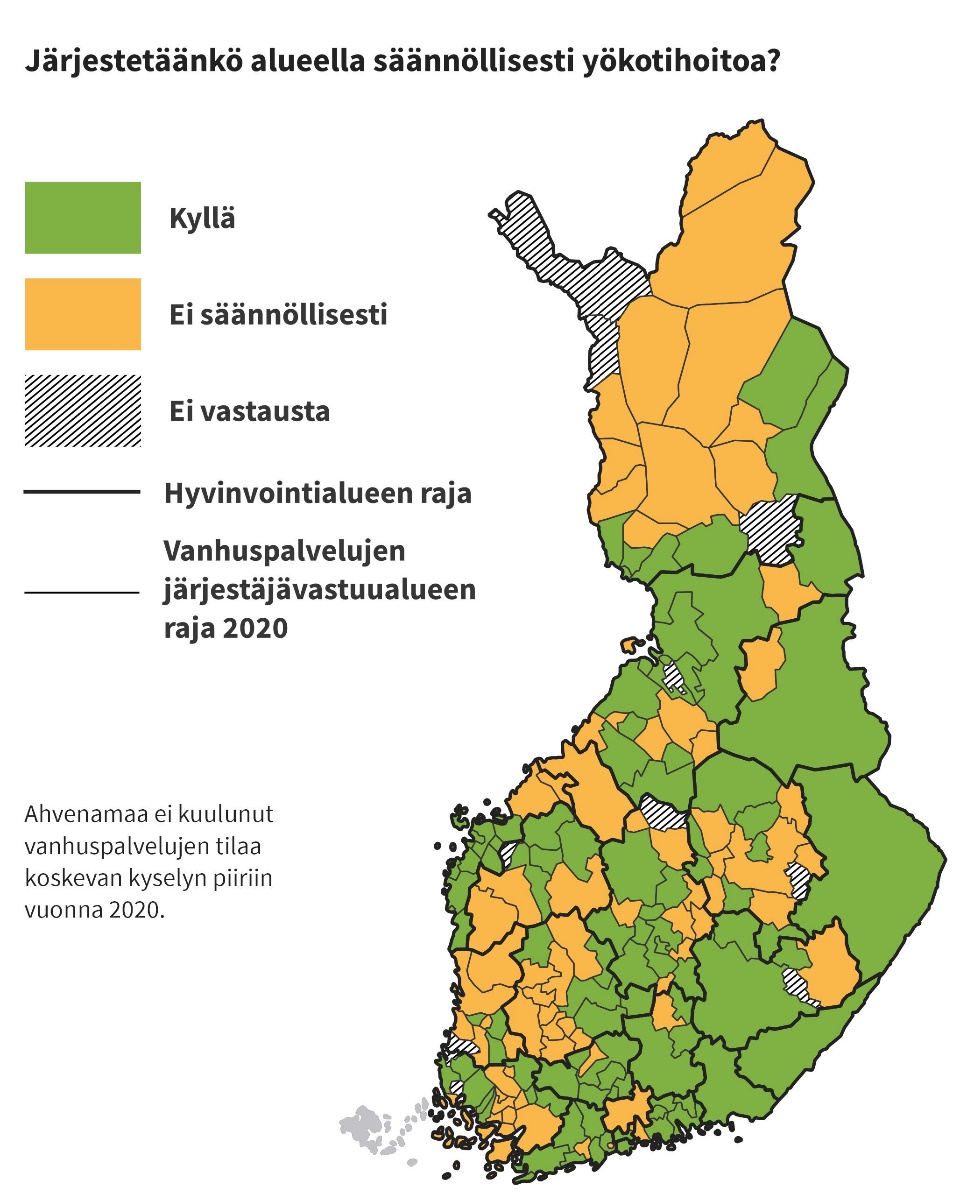 Ikääntyneen väestön ja iäkkäiden henkilöiden sosiaali- ja terveydenhuollon palvelut järjestetään ensisijaisesti ja pääosin yleislakien eli sosiaalihuoltolain ja terveydenhuoltolain nojalla. Ikääntyneen väestön toimintakyvyn tukemisesta sekä iäkkäiden sosiaali- ja terveyspalveluista annettu laki (vanhuspalvelulaki) ei sisällä säännöksiä palveluista lukuun ottamatta lain 12 §:ssä tarkoitettuja hyvinvointia edistäviä ja ennaltaehkäiseviä palveluja. Yksittäisistä palveluista säätämisen sijaan laissa velvoitetaan kunnat yleisemmin tukemaan ikääntyneen väestön hyvinvointia, terveyttä, toimintakykyä ja itsenäistä suoriutumista sekä turvaamaan iäkkäiden henkilöiden tarvitsemat sosiaali- ja terveyspalvelut kunnassa ja huolehtimaan iäkkään henkilön palvelutarpeiden selvittämisestä ja niihin vastaamisesta. Lisäksi laissa säädetään iäkkäille henkilöille järjestettävien palvelujen laadun varmistamisesta.