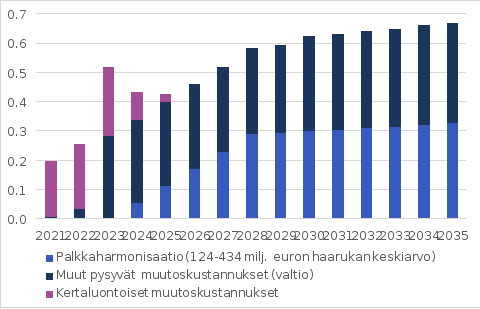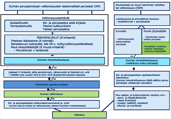 Kuntien valtionosuuksia ehdotetaan vähennettäväksi siirtyviä tehtäviä vastaavalta osalta. Tästä sekä kunnallisveron alentamisesta aiheutuvia muutoksia rajoitettaisiin valtionosuusjärjestelmään sisällytettävällä pysyvällä määräytymistekijällä ja valtionosuusjärjestelmämuutoksen tasauksella.