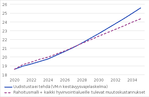 Suomen julkisen talouden kestävyysvajeen suuruudeksi arvioidaan 3–4 prosenttia BKT:sta. Ikäsidonnaisten menojen kasvu jatkuu koko 2020-luvun ja siitä eteenpäin. Väestön ikärakennekehityksen ja kuntien eriytyvän kantokyvyn vuoksi sosiaali- ja terveydenhuollon rakenteet ja rahoitus eivät enää pysty turvaamaan yhdenvertaisia palveluja kaikille suomalaisille. Kuntien hartiat eivät kestä sosiaali- ja terveydenhuollon rahoittamista ja järjestämistä. Sosiaali- ja terveydenhuollon järjestelmän haasteet ovat erilaisia eri puolilla maata. Väestöä menettävillä, ikääntyvillä alueilla sosiaali- ja terveyspalveluiden saatavuudessa on ongelmia. Muun muassa pääkaupunkiseudulla väestönkasvu ja maahanmuuttajien määrän kasvu aiheuttavat haasteita sosiaali- ja terveyspalvelujen järjestämiseen. Myös perustuslakivaliokunta on katsonut sosiaali- ja terveyspalvelujen järjestämisen uudistamiselle olevan perusoikeusjärjestelmään pohjautuvia painavia perusteita, jotka puoltavat sosiaali- ja terveyspalvelujen järjestämisvastuun siirtämistä yksittäisiä kuntia suurempien toimijoiden hoidettavaksi (ks. PeVL 65/2018 vp, s. 4; PeVL 26/2017 vp, s. 7; PeVL 30/2016 vp, s. 2; PeVL 75/2014 vp, s. 2/I ja PeVL 67/2014 vp, s. 3–4).