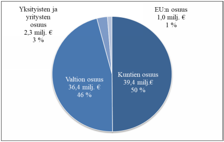 Kuva 4. Rahoittajien osuudet valtion jätehuoltotyönä valmistuneissa hankkeissa. Lähde: SYKE 2018.