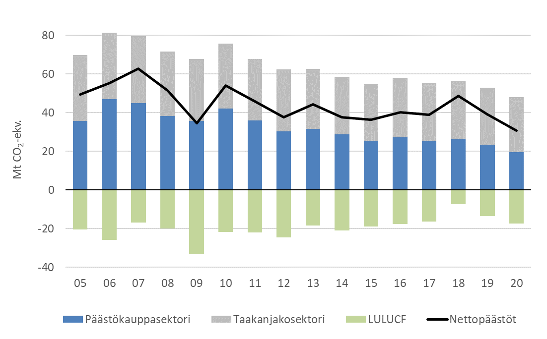 Lain mukainen ilmastonmuutoksen hillitsemistä koskevien toimenpiteiden suunnittelu keskipitkällä aikavälillä kohdistuisi niin sanotun taakanjakosektorin kasvihuonekaasujen päästöihin. Päästökauppasektorin ja taakanjakosektorin yhteenlaskettujen kasvihuonekaasujen päästöjen vähennystavoitteiden saavuttamiseen vaikuttaa merkittävästi EU:n päästökauppajärjestelmän toiminta, johon Suomi voi omalta osaltaan vaikuttaa pyrkimällä tukemaan järjestelmän vaikuttavuuden vahvistamista osana unionin ilmastopolitiikkaa.