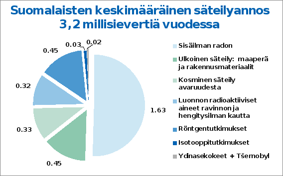 kehossa luonnostaan olevien radioaktiivisten aineiden aiheuttamaan taustasäteilyyn;