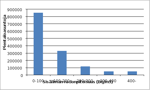 Toimenpidearvo asunnoille ja myöskin työpaikoille on nykyään 400 becquerelia kuutiometrissä, ja lain nojalla annettaisiin uusi viitearvo, joka olisi 300 becquerelia kuutiometrissä.