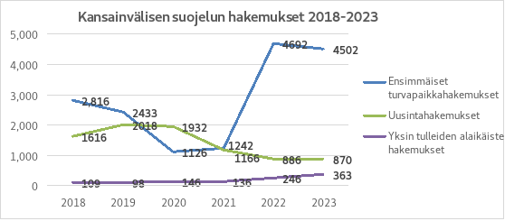 Taulukko 1: Kansainvälisen suojelun hakemukset vuosina 2018‒2023
