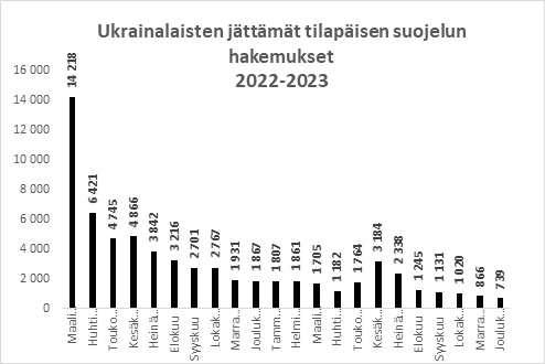 Taulukko 2: tilapäistä suojelua hakeneet ukrainalaiset 2022‒2023