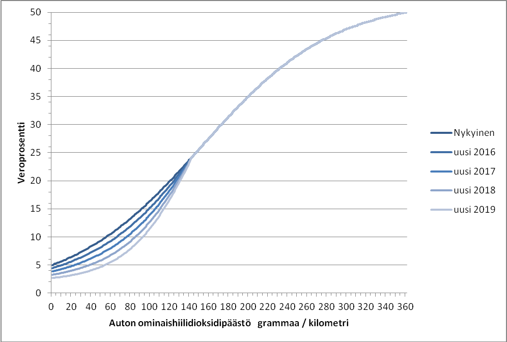 Henkilöautosta ja pakettiautosta autoveroa kannetaan lain liitteenä olevan verotaulukon mukainen prosenttimäärä auton verotusarvosta. Veroprosentti määräytyy henkilöauton tai vuoden 2008 alun jälkeen ensi kertaa käyttöönotetun pakettiauton yhdistettyä kaupunki- ja maantieajon polttoaineen kulutusta vastaavan hiilidioksidipäästön perusteella. Jos tietoa ominaishiilidioksidipäästöstä ei ole merkitty auton teknisiin tietoihin, määräytyy veroprosentti auton kokonaismassaa ja käyttövoimaa vastaavan laskennallisen hiilidioksidipäästön perusteella. Laskennallista päästötasoa käytetään verotettaessa vanhempia käytettyjä ajoneuvoja ja sellaisia uusia ajoneuvoja, joita eivät koske tyyppihyväksyntää ja päästöjen mittaamista koskevat EU:n säännökset. Laskennallinen veroprosentti korotetaan puolitoistakertaiseksi, jos auton kilowatteina ilmaistun tehon suhde kilogrammoina ilmaistuun kokonaismassaan on vähintään 0,15. Laskennallisen veroprosentin sijasta verovelvollinen voi kuitenkin esittää selvityksen tyyppihyväksyntään perustuvasta ominaishiilidioksidipäästöstä tai muun EU:n lainsäädännön vaatimusten mukaan määritellystä ominaishiilidioksidipäästöstä. Pienin ominaishiilidioksidipäästöön tai laskennalliseen päästöön perustuva veroprosentti on viisi ja suurin viisikymmentä. Suurten pakettiautojen veroprosentista tehdään lisäksi kantavuuteen perustuva vähennys, joka on 9,8—21,7 prosenttiyksikköä.