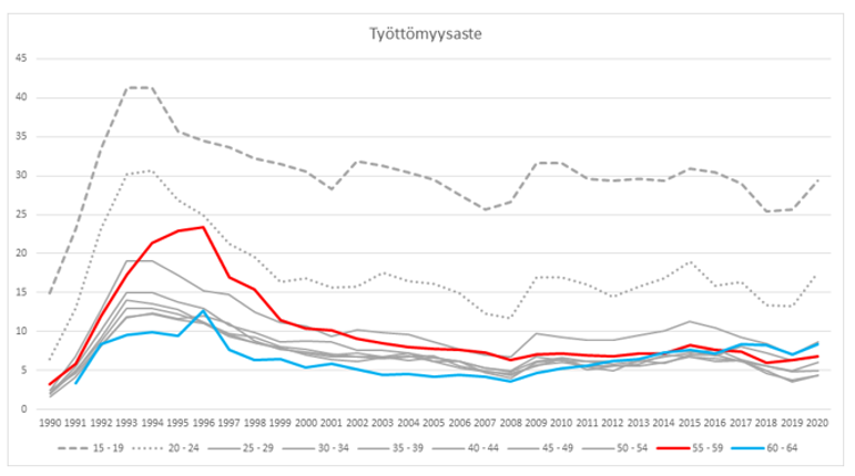 2) joka viimeistään irtisanomispäivänä on täyttänyt 55 vuotta;