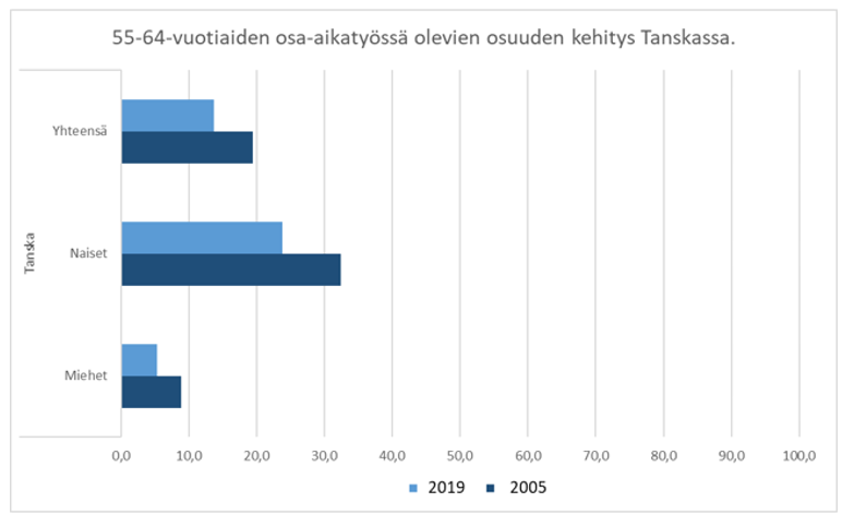 Momentissa säädettäisiin vielä siitä, että työntekijän pyynnöstä työnantajan olisi ensisijaisesti järjestettävä työt osa-aikatyön mahdollistavalla tavalla myös silloin, kun 55 vuotta täyttänyt, työnantajan palveluksessa vähintään kolme vuotta ollut työntekijä haluaa lyhentää säännöllistä työaikaansa. Säännöksen noudattamisen edellytyksenä olisi ainoastaan työntekijän vähintään 55 vuoden ikä ja kolmen vuoden työhistoriavaatimus kyseisen työnantajan palveluksessa. Osa-aikatyön tekemistä koskevan pyynnön taustalla ei edellytetä olevan työntekijän esittämiä terveydellisiä tai sosiaalisia syitä eikä muitakaan perusteita. Ehdotetun säännöksen taustalla on kuitenkin ikääntyneen työntekijän työssä jaksamisen ja työhyvinvoinnin tukeminen. Yleisenä tavoitteena on pidentää työntekijöiden työuria.