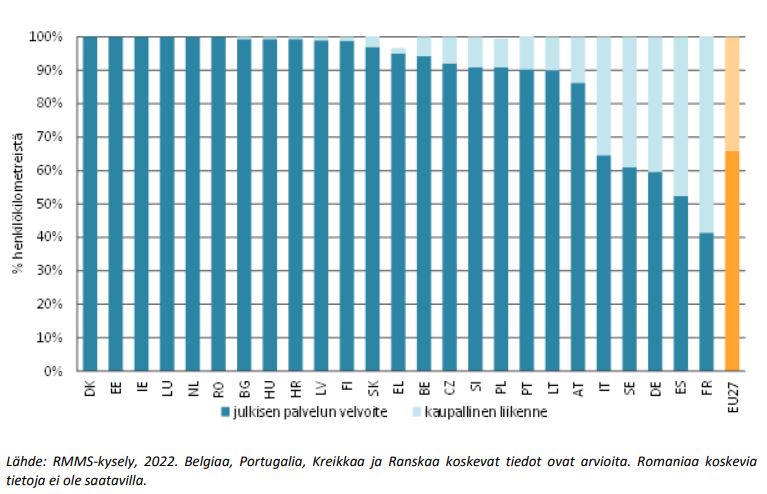 Palvelusopimusasetusta sovelletaan myös julkisen henkilöliikenteen kansainväliseen harjoittamiseen. Asetuksen mukaan niiden jäsenvaltioiden toimivaltaisten viranomaisten suostumuksella, joiden alueella palveluja tarjotaan, julkisen palvelun velvoitteet voivat koskea rajat ylittäviä palveluja, mukaan lukien kyseiset palvelut paikallisten ja alueellisten liikennetarpeiden kattamiseksi. Komission tiedonannossa rautateiden ja maanteiden julkisista henkilöliikennepalveluista annettua asetusta (EY) N:o 1370/2007 koskevista tulkitsevista suuntaviivoista (2023/C 222/01) todetaan, että kansainvälisen julkisen palvelun perustaminen edellyttää sen jäsenvaltion toimivaltaisten viranomaisten suostumusta, jonka alueella palveluja tarjotaan. Tiedonannon mukaan rajat ylittävää yhteistyötä voidaan toteuttaa eri tavoin, sopimukset voivat olla muodoltaan erilaisia ja toimivaltaisilla viranomaisilla on laaja harkintavalta sopimuksen sisällöstä.