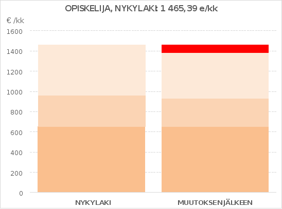 Jäädytyksen vaikutus olisi euromääräisesti suurin itsenäisesti asuvalla 18 vuotta täyttäneellä opiskelijalla (enintään noin 32 euroa kuukaudessa). Vastaavasti esim. itsenäisesti asuvan 17-vuotiaan muussa kuin korkeakoulussa opiskelevan opintorahaan vaikutus olisi enimmillään lähes 26 euroa kuukaudessa ja vanhempansa luona asuvilla 20 vuotta täyttäneillä opiskelijoilla vaikutus olisi enimmillään 23 euroa kuukaudessa.