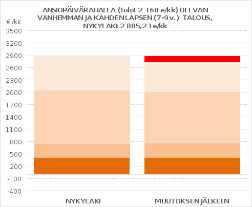 Kuvio 4: Ansiopäivärahalla oleva vanhempi ja 7–9-vuotiaat lapset (tulot laskevat 148,36 e/kk)