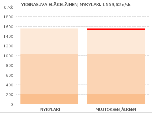 Kuvio 7: Yksinasuva eläkeläinen (tulot laskevat 28,69 e/kk)