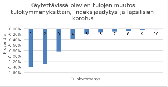 Muutosten vaikutukset kohdistuvat eniten alimpiin tulodesiileihin. Vaikutukset toiseksi alimpaan tulodesiiliin ovat hieman suuremmat kuin alimpaan.