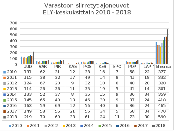 Taulukko 1: Varastoon siirretyt ajoneuvot ELY-keskuksittain 2010-2018