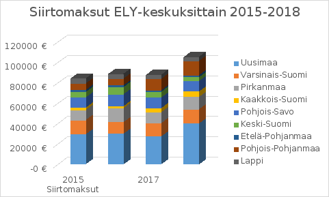 Taulukko 2: Siirtomaksut ELY-keskuksittain 2015-2018