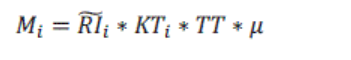 Kunkin talletuspankin i kokonaisriskiä kuvaava mittari RIi saadaan, kun lasketaan yhteen kunkin talletuspankin yksittäisten riskejä kuvaavien mittareiden lopulliset arvot, jotka on kerrottu kunkin yksittäisen riskejä kuvaavan mittarin painoarvolla Ak
