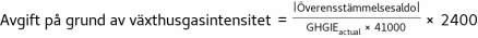 Avgift på grund av växthusgasintensitet | Beloppet på den avgift som avses i 7 b kap. 1 § och som baserar sig på överensstämmelsesaldot för växthusgasintensitetsmålet enligt artikel 4 i förordningen om användning av förnybara och koldioxidsnåla bränslen för sjötransport, i euro |