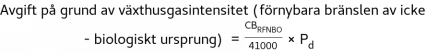 Om värdet av fartygets överensstämmelsesaldo för förnybara bränslen av icke-biologiskt ursprung är positivt, beräknas beloppet för avgiften på grund av växthusgasintensitet enligt följande: