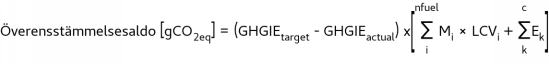 Överensstämmelsesaldo | Absoluta värdet av överensstämmelsesaldot för växthusgasintensitet för ett fartyg beräknat enligt formlerna i del A i denna bilaga |