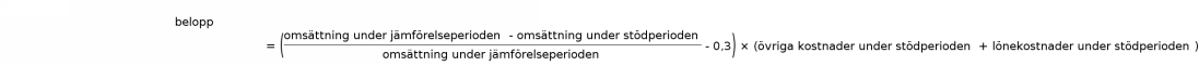 Kostnadsstödet omfattar de verksamsamhetsområden inom vilka företagens omsättning under stödperioden är minst 10 procent mindre än omsättningen under jämförelseperioden. Vid jämförelsen används medianen av förändringen i omsättningen för företagen inom verksamhetsområdet. Jämförelseperioden är den tidsperiod under 2019 som motsvarar stödperioden.
