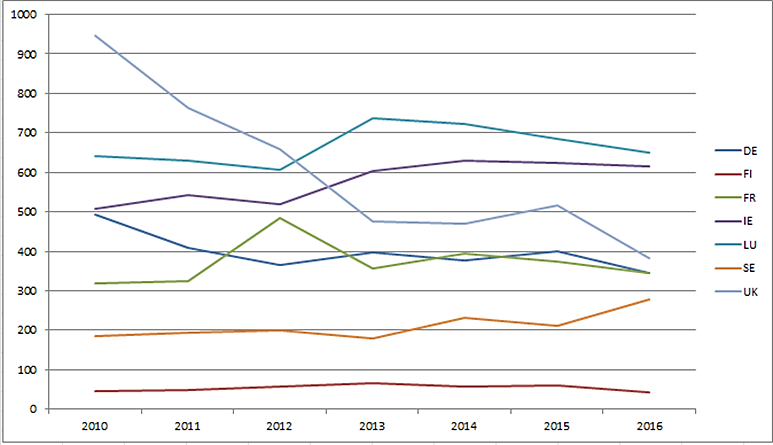 Om påföljdsavgift påförs för en överträdelse av en bestämmelse som avses i 15 kap. 2 § 1 mom. 2 punkten eller 15 kap. 2 § 3 mom. i värdepappersmarknadslagen, får en juridisk person påföras en påföljdsavgift som uppgår till antingen högst tre procent av den juridiska personens omsättning under året före gärningen eller försummelsen eller högst fem miljoner euro, beroende på vilkendera som är större, och en fysisk person påföras en påföljdsavgift som uppgår till högst 700 000 euro.