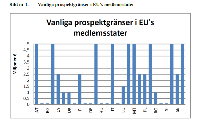 I artikel 3.2 i prospektförordningen ingår en medlemsstatsoption. Medlemsstaterna får undanta erbjudanden av värdepapper till allmänheten från skyldigheten att offentliggöra ett prospekt under förutsättning att sådana erbjudanden inte är föremål för anmälan i enlighet med artikel 25. En anmälan innebär att prospekt med tillägg och de slutgiltiga villkoren anmäls till den behöriga myndigheten. Dessutom får medlemsstaterna besluta om undantag från skyldigheten att offentliggöra ett prospekt om det sammanlagda beloppet för varje sådant erbjudande inom unionen är lägre än ett belopp som beräknas under en tolvmånadersperiod, vilket inte får överstiga 8 000 000 euro.
