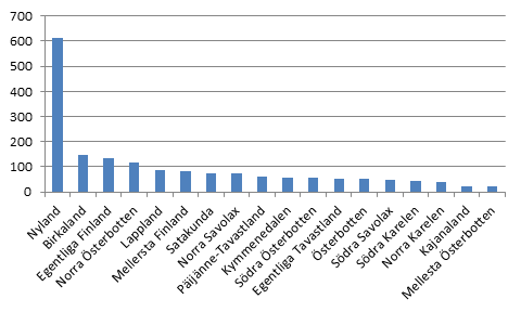 Av stapeldiagrammet framgår fastighetsskatteintäkterna landskapsvis med uppgifter om debiterade fastighetsskatter 2017. På skalan avbildas skattens eurobelopp i miljoner euro när fastighetsskatteintäkten är 1,79 miljarder euro. Av intäkten kommer en dryg tredjedel från Nyland (34,3 %), cirka åtta procent från Birkaland (8,2 %) och Egentliga Finland (7,6 %). Kajanalands och Mellersta Österbottens andelar är cirka en procent av totalintäkten (1,3 % och 1,1 %).