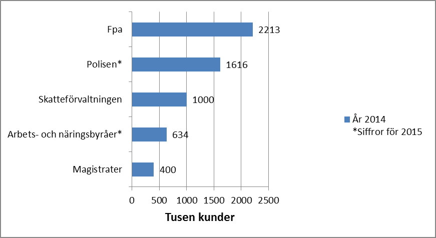 Tabell 1: Uppskattningar av antalet ärendebesök vid de viktigaste statliga serviceproducenterna 2014 och 2015