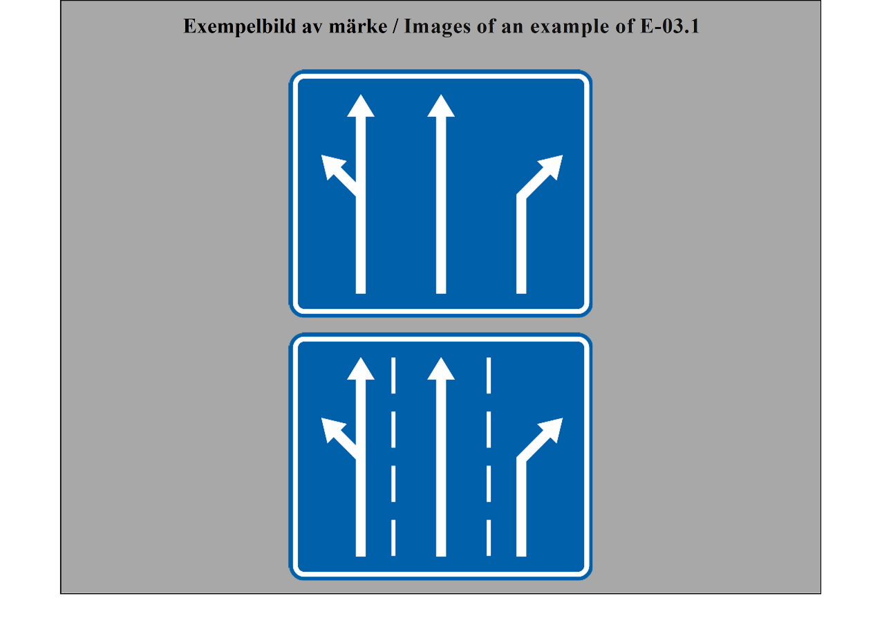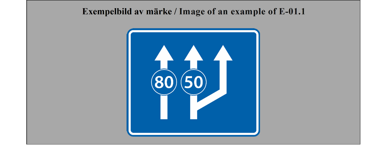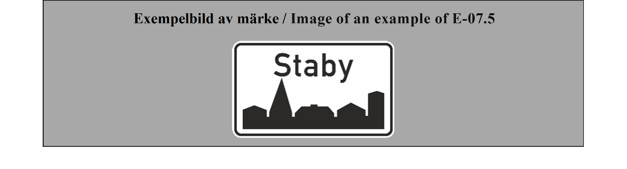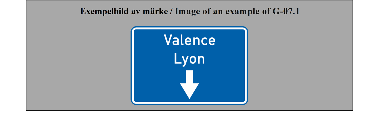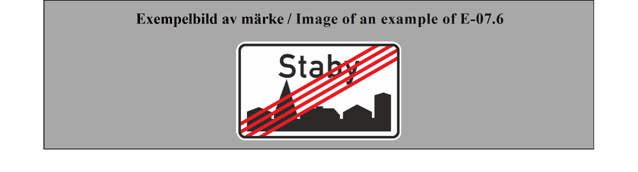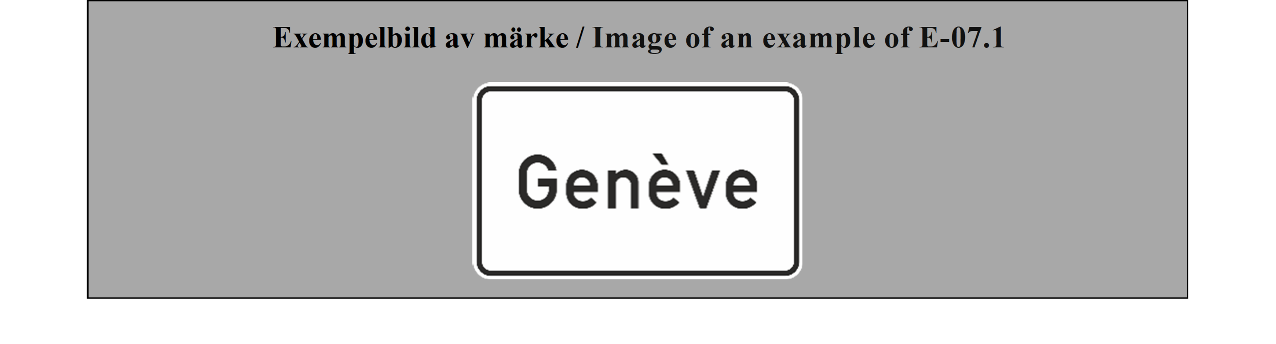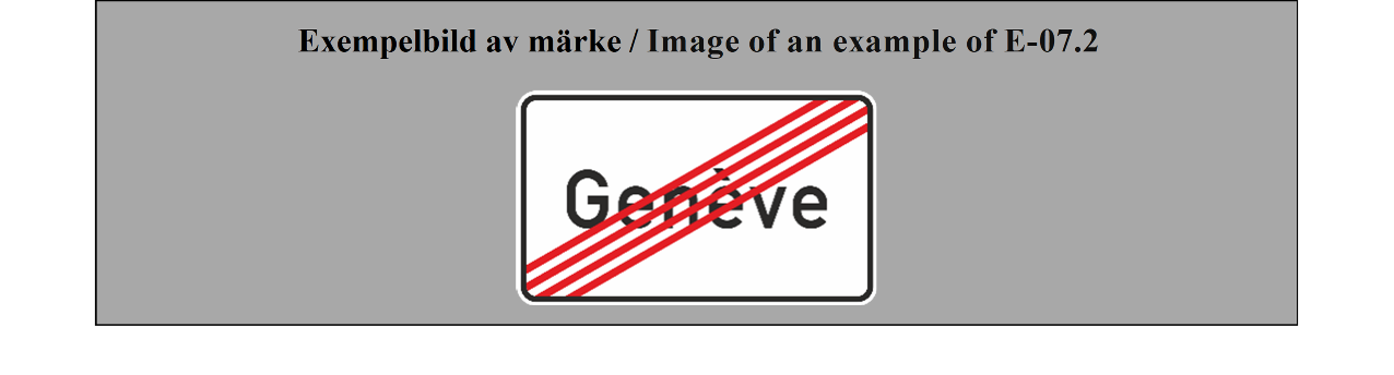 E-07.1, E-07.2, E-07.3, E-07.4, E-07.5, E-07.6 shall be in a dark colour on a white or light-coloured ground and the sign shall have a dark-coloured rim.