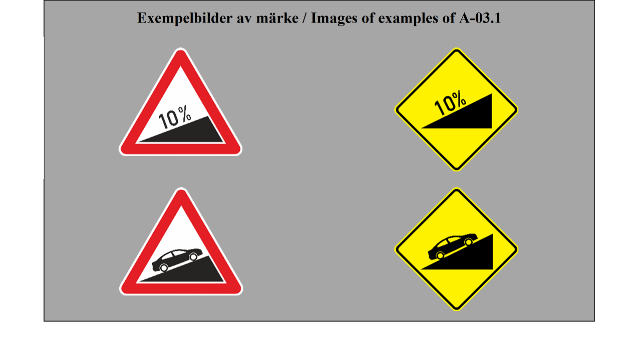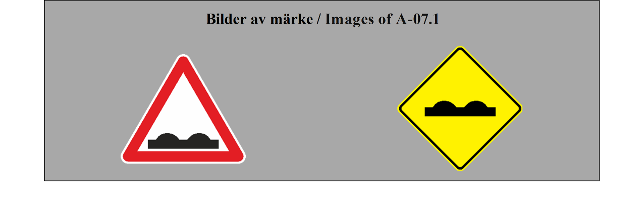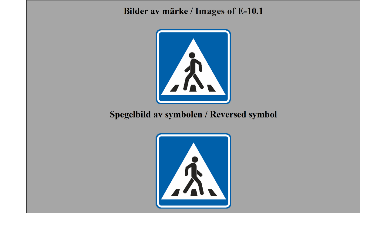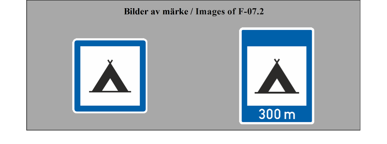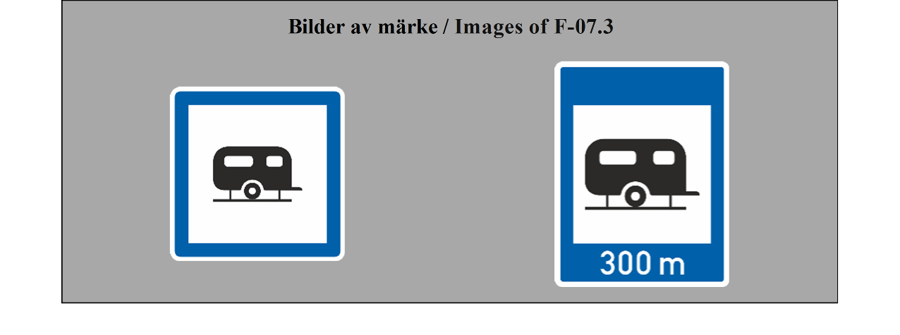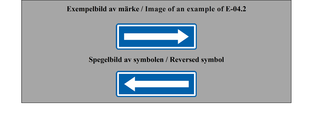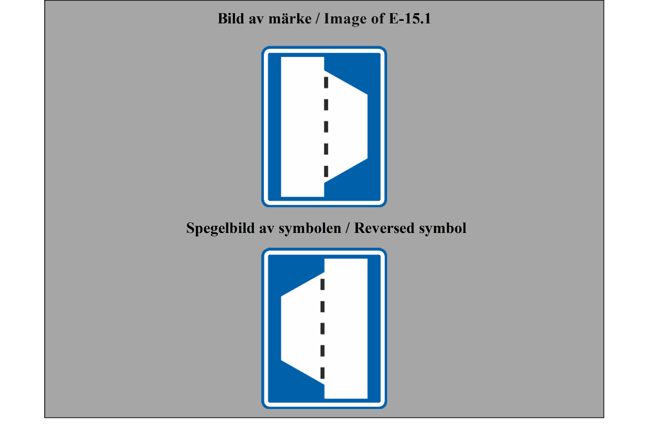 E-07.1, E-07.2, E-07.3, E-07.4, E-07.5, E-07.6 shall be in a dark colour on a white or light-coloured ground and the sign shall have a dark-coloured rim.