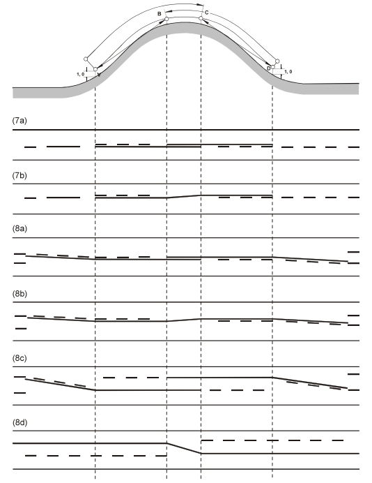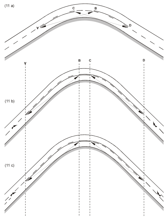 6. I punkt 7, efter texten "punkt 11", ersätts meningen "Om stycket som har lagts till efter artikel 26.2 b i konventionen tillämpas, kan kanten på varje körfält där trafikriktningen kan ändras, markeras med två streckade linjer i enlighet med artikel 26.2 a ii i konventionen (diagram A-5 och A-6)." ersätts enligt följande: