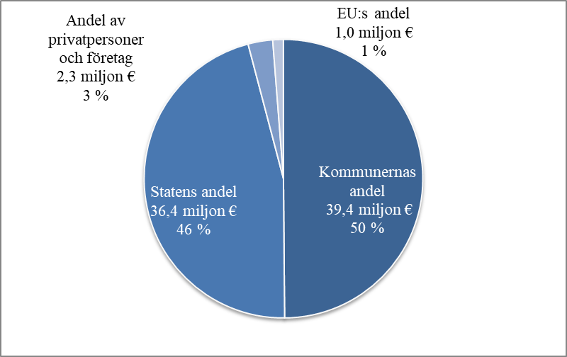 Figur 4. Finansiärernas andelar i projekt som färdigställts som statens avfallshanteringsarbeten. Källa: SYKE 2018
