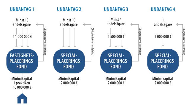 De undantag som gäller för specialplaceringsfonder kan beskrivas som följer: