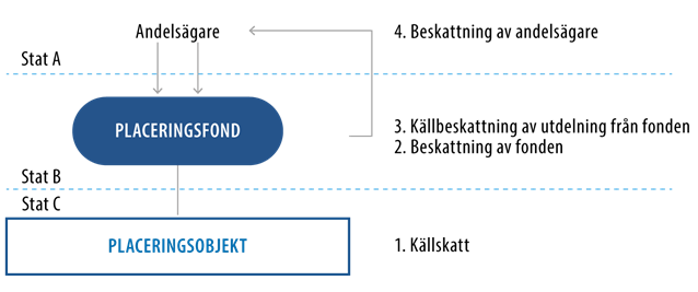 Trots att finska placeringsfonder genom lag är samfund som är befriade från inkomstskatt, kan de vara skyldiga att betala källskatt på placeringsavkastning utomlands. Vad gäller skattebelastningen på en finsk placeringsfond är det av stor vikt om källstaten för inkomsten tillämpar ett skatteavtal som den ingått med Finland eller inte. Det är också möjligt att källstaten betraktar den finska placeringsfonden som transparent i beskattningen och i stället för ett skatteavtal med Finland tillämpar ett skatteavtal som den ingått med andelsägarens hemviststat.