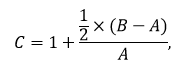 där A är den andel som Ålands befolkning utgör av rikets befolkning år t, B är befolkningsandelen år t+n och C är koefficienten med vilken avräkningsbeloppet justeras.