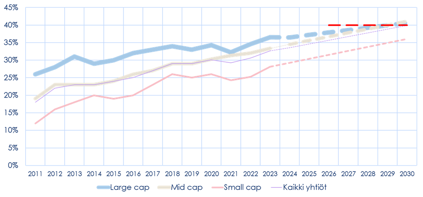Enligt direktivet ska börsnoterade företag omfattas av något av följande mål som ska uppnås senast den 30 juni 2026: