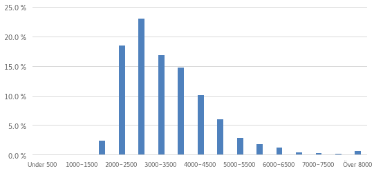 År 2021 var bruttolönen före stödet för en genomsnittlig person som fått vuxenutbildningsstöd för löntagare omkring 2 980 euro i månaden (medianen), vilket med förmånsparametrarna för 2021 betydde ett månatligt stöd på cirka 1500 euro. Av stödtagarna hade 10 procent en tidigare bruttoförtjänst på under 2 120 euro, och 10 procent en bruttoförtjänst på över 4 470 euro. Omkring hälften av stödtagarna tjänade tidigare 2 500–3 650 euro. Bland alla löntagare var medianen för den totala förtjänsten år 2021 3 315 euro per månad.