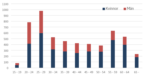 År 2022 betalades vuxenutbildningsstöd till 30 124 personer. Det betalades ut sammanlagt 177,9 miljoner euro i stöd. Av stödtagarna var 76 procent kvinnor och 24 procent män. Av de utbetalade stöden fick kvinnorna 74 procent och männen 26 procent. I figur 1 presenteras stödtagarnas köns- och åldersfördelning år 2021. Av dem som fick vuxenutbildningsstöd 2021 var 25 procent i ett parförhållande utan barn under 18 år, 48 procent i ett parförhållande med minst ett barn under 18 år som bodde hemma, 8 procent ensamstående med barn och 19 procent ensamstående utan minderåriga barn.