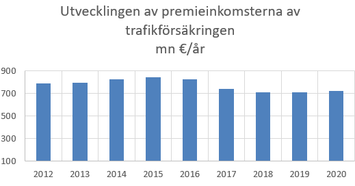 Premieinkomsterna av trafikförsäkringen började minska genast när den nya trafikförsäkringslagen hade trätt i kraft 2017, och premieinkomsterna var då 738 miljoner euro. Detta innebar en minskning på över tio procent jämfört med 2016, då premieinkomsterna ännu var 825 miljoner euro. Försäkringspremieinkomsterna minskade ännu 2018, men 2019 ökade premieinkomsterna av trafikförsäkringen däremot med knappt en procent jämfört med året innan och var 710 miljoner euro. År 2020 ökade premieinkomsterna ytterligare med cirka en procent och var 718 miljoner euro.