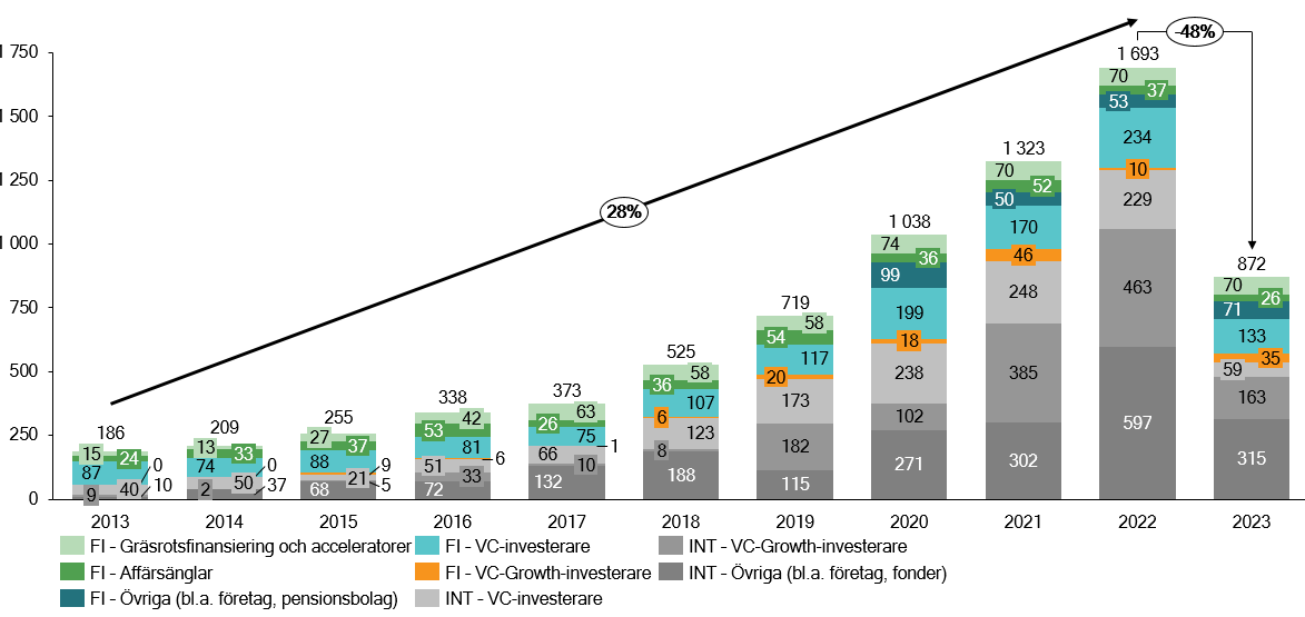 Kapitalsituationen och kapitalbehovet i det nya investeringsbolag som bildas i enlighet med regeringsprogrammet och den lagstiftning som gäller bolaget bedöms som en helhet i syfte att skapa ett effektivt instrument med en tydlig uppgift och ett tydligt mål: att hjälpa företag växa snabbare. Bolagets nuvarande kapitalstruktur bygger i sin helhet på bolagets investeringstillgångar och avkastningen på dem, på likvida medel samt på statlig ägarfinansiering i form av eget kapital. Som ett led i beredningen har man också bedömt Finlands Industriinvestering Ab:s möjligheter att skaffa främmande kapital för sin finansieringsverksamhet. I ett sådant alternativ skulle bolaget kunna öka sitt disponibla kapital till exempel med hjälp av masskuldebrevslån eller annan upplåning. Utsikterna för de kommande tre åren i fråga om ett eventuellt behov av främmande kapital blev bättre efter ramförhandlingarna, vilka omfattade ett beslut om ytterligare kapitalisering av koncernen med 300 miljoner euro.