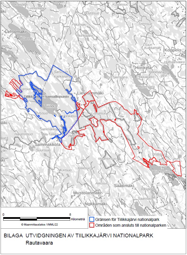 Det föreslås att det till Tiilikkajärvi nationalpark ansluts cirka 2 441 hektar statsägda marker som finns i Rautavaara kommun och som ligger i Natura 2000-områdena Tiilikka, Pumpulikirkko, Löytynsuo-Maamonsuo och Haravalehto samt på norra sidan av sjön Ylä-Keyritty. Utskottet anser att områdena kompletterar Tiilikkajärvi nationalpark med representativ myr- och skogsnatur och imponerande geologiska formationer. Utvidgningen av nationalparken grundar sig på initiativ av Norra Savolax förbund och Rautavaara kommun, och utvidgningen har ett brett stöd på lokal nivå.